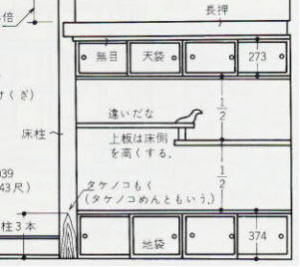 通常、四枚の引き違いの小さな戸になることが多く、天袋と地袋でそろいの模様を使うことが多い。