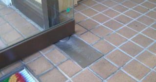床に箱を仕込み、その中に軸吊り式の蝶番を組みこんだ開き戸の開閉装置。